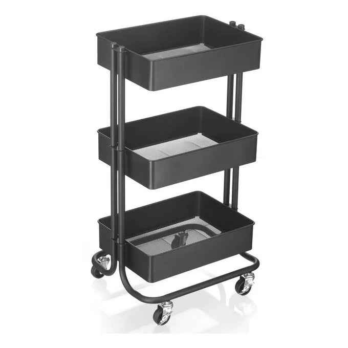 This 3 Tier Trolley is a fantastic extra storage unit for any room, from your bathroom to home office, featuring three shelves with mesh bases and four wheels for easy maneuverability. Constructed from iron for a sturdy and durable design, this storage trolley is perfect for your cosmetics, towels, paperwork, toys, and much more.