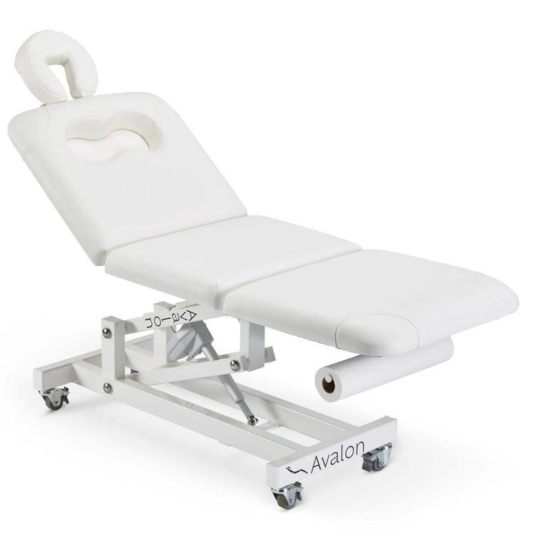 Fully electric 3 section treatment table with three motors and the addition of a 'boob hole' in the top section.